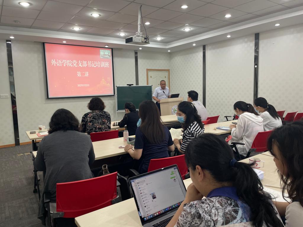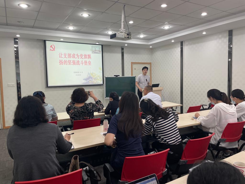 师生作了题为“让支部成为党旗飘扬的坚强战斗堡垒”专题讲座。本次培训采取线上线下相结合的方式,院党委书记朱筱玉、副书记韩立新,院党委委员王凤英、王菊芳,各党支部书记、委员,党务秘书等30多人参加了培训,培训会议由韩立新主持。