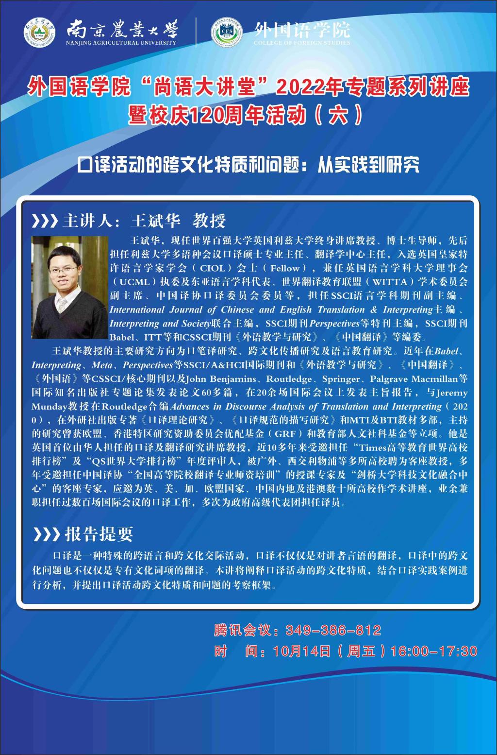讲座题目:口译活动的跨文化特质和问题:从实践到研究