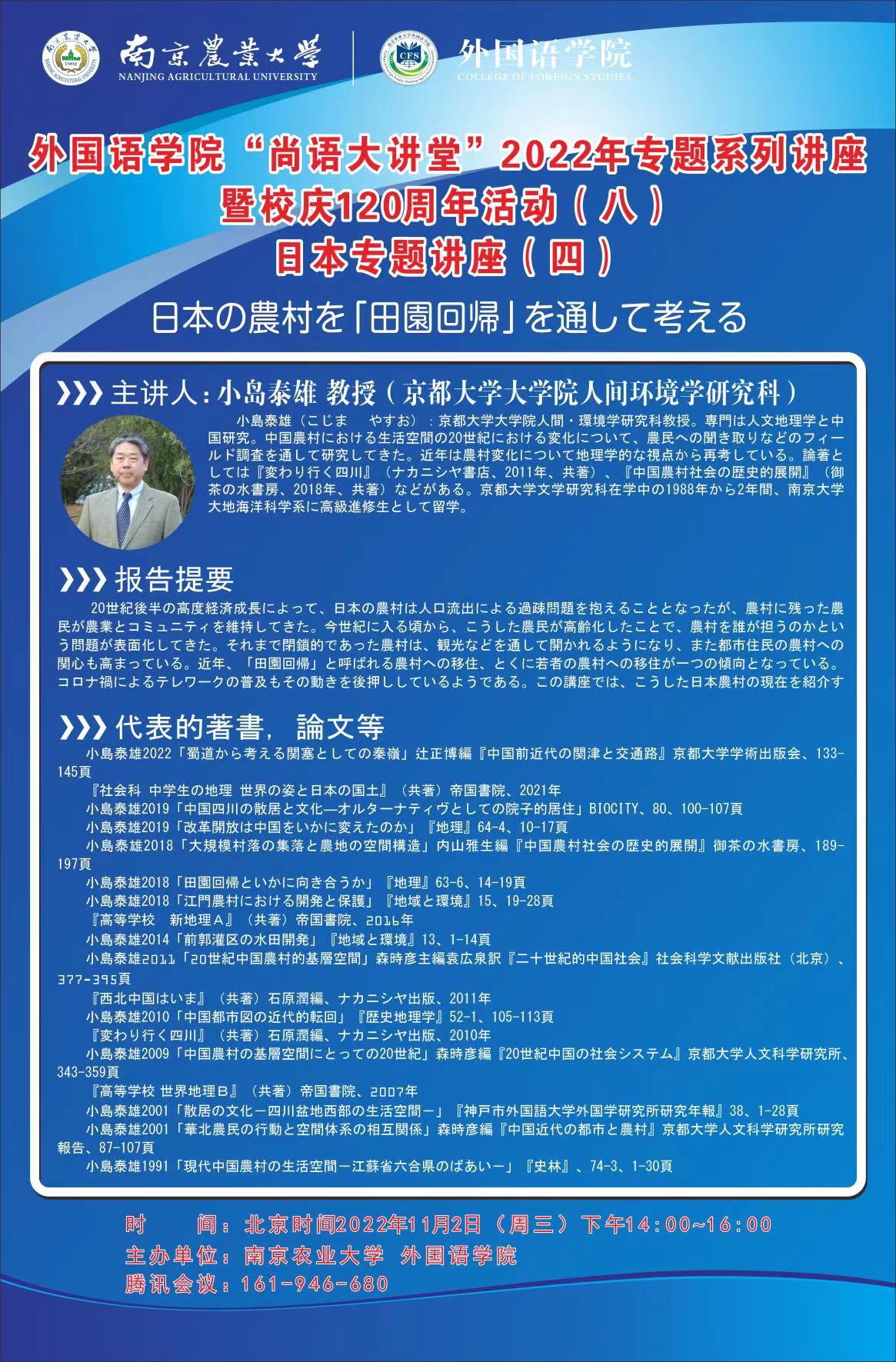 报告人:小岛泰雄教授(京都大学大成人电影 人间环境学研究科)