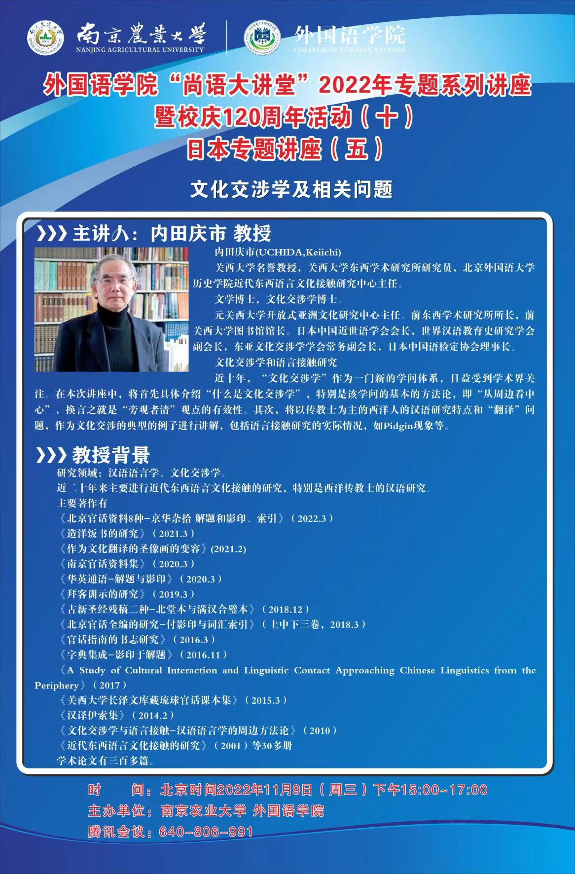 下一篇:“尚语大讲堂”2022年专题系列讲座(九) A Lecture Series on English Jueju (绝句)