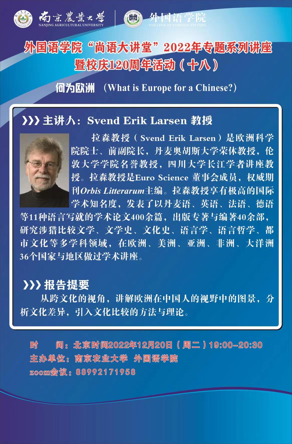 讲座题目:何为欧洲(What is Europe for a Chinese?)