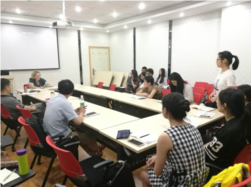 大三修读文学课的学生参加了本次工作坊,工作坊的主题是“The Appreciation of the Short Story: Taking William Faulkner’s ‘Barn Burning’as an Example”(威廉·福克纳短篇小说赏析——以《烧马棚》为例)。此次工作坊采取学生小组汇报、专家点评、问题探讨的形式,开启了一场别开生面的文学欣赏之旅。首先,来自两个班的三个小组代表分别从背景介绍、人物性格分析以及弗洛伊德心理分析视角下的父子关系解读等方面作了展示;然后Ching教授对几个小组的展示稍作点评,并以几个核心关键词,如:injustice(不公平)、horses and barns(马和马棚)、form and burlesque(形式与作戏)等从该短篇小说的文化背景出发,解读了其中鲜为人关注的细节,提供了文学批评以小见大的最好范例;最后,几位同学还就小说中的一些具体细节和开放式结局与Ching教授进行了良好的交流探讨。
