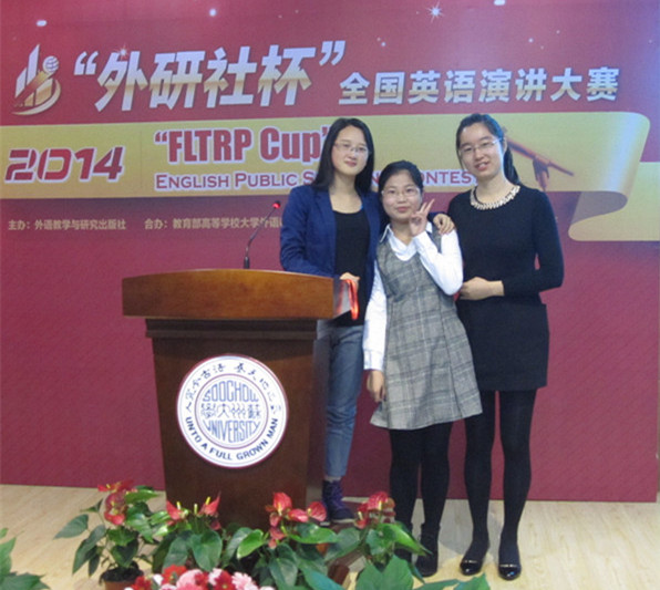 11月6日-8日,由外语教学与研究出版社、教育部高等学校大学外语教学指导委员会、教育部高等学校英语专业教学指导分委员会、江苏省高等学校外国语教学研究会联合主办的2014“外研社杯”全国英语演讲大赛江苏赛区决赛在苏州大学举行。经过全省各高校预赛推选出来的超过150名选手参加了此次决赛。我校选手周芳燕、钱玉奇和陆孙男同学在成人电影 鲍彦老师及外教Britton的带领下参加了比赛。最终,周芳燕同学和钱玉奇同学获得三等奖,陆孙男同学获得优胜奖。