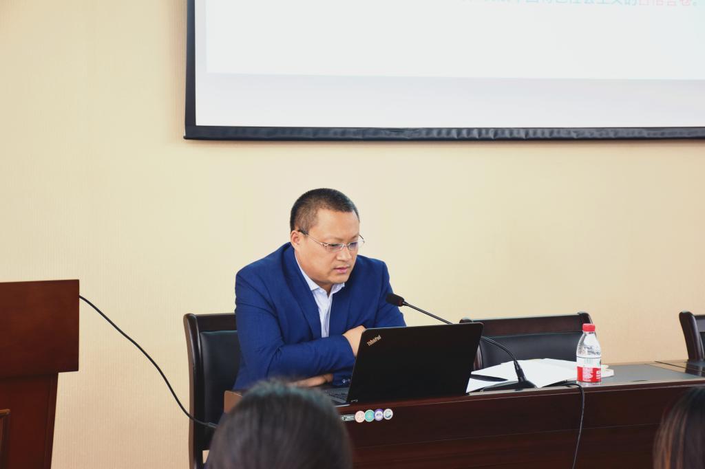 通过与大家进行深入地学习和解读,他指出,要结合师生自身的教学科研和学习等用习近平新时代中国特色社会主义思想武装头脑、指导实践、推动工作,要坚持全面学、贯通学、深入学,在学懂弄通做实上下真功夫,努力增进政治认同、思想认同、情感认同,做到学、思、用贯通,知、信、行统一,用自己的扎扎实实的学习努力践行“不忘初心、牢记使命”主题教育的总要求。
