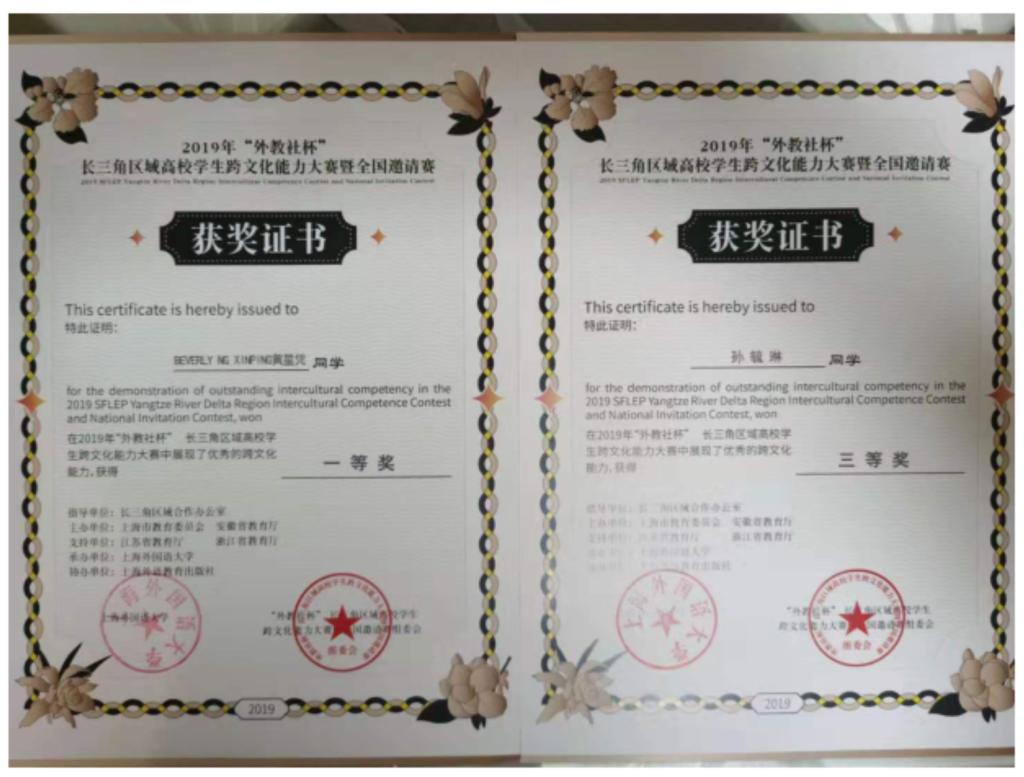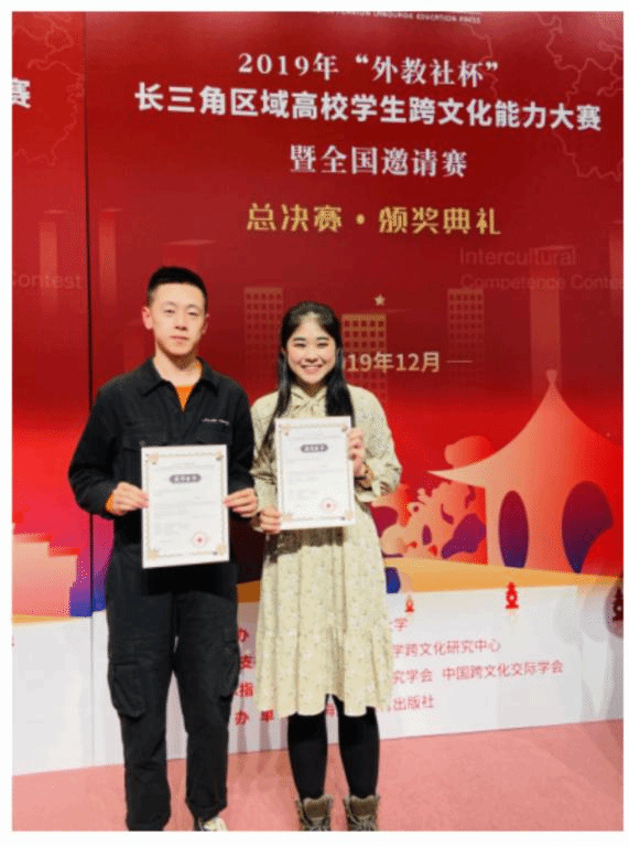 本次大赛共有 200 多所高校参加,选出 17 支队伍赴上海外教社参加总决赛。我校学生黄星凭(BEVERLY NG XINPING)和孙毓琳入选江苏省代表队。通过两天激烈的角逐,两名选手在跨文化案例展示和现场问答环节表现优秀进入总决赛。总决赛分为三个环节,跨文化知识快问快答、情景评述、讲述中国故事,留学生黄星凭(BEVERLY NG XINPING)获得总决赛一等奖和特别贡献奖,孙毓琳同学获得三等奖,两位同学赢得了专家评委们的一致认可;外语成人电影