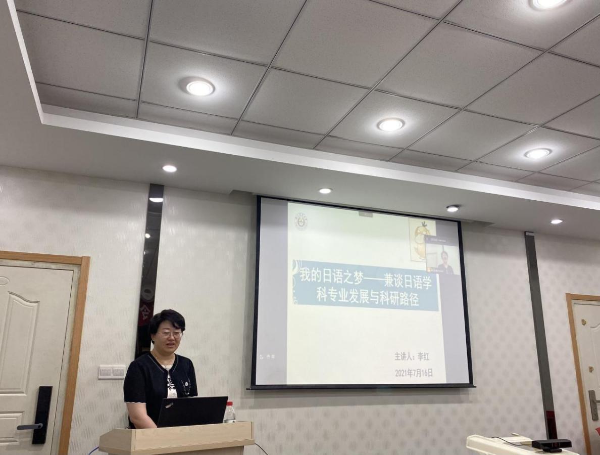 学术委员会委员、日语硕士学位点点长李红教授作了“我的日语之梦——兼谈日语学科专业发展与科研路径”的讲座。李教授为营员讲述了成人电影