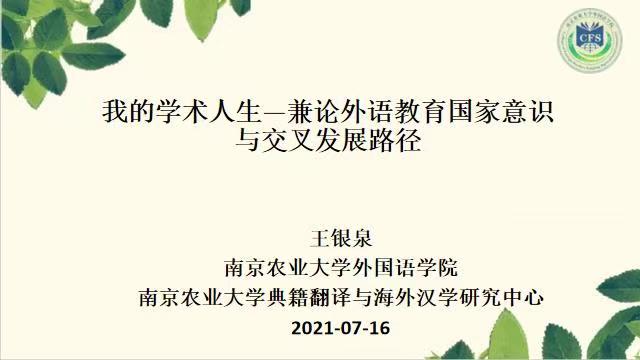学术委员会主任、外国语言文学一级学位点点长、博士生导师王银泉作了“我的学术人生——兼论外语教育国家意识与交叉发展路径”的学术报告。王教授和营员们分享了自己最近二十年来在多个方向的学术研究和成果,如2011-2018年全程参与教育部国家语委《公共服务领域英文译写规范》国家标准研制、2014年参加南京青奥会翻译服务、2016-2018年承担十集纪录片《外国人眼中的南京大屠杀》、南京大屠杀史实国外系列展览英文稿审定、2017年完成纪录片《南京之殇》台词翻译、2019年应邀至牛津大学进行学术讲座以及到剑桥李约瑟研究所进行学术交流等,完美诠释了外语教育和科学研究服务于国家战略的精彩学术人生。王教授指出,外语人才培养应该在充分发挥外语学科语言优势的基础之上,大力推进交叉学科的培养路径,进一步强化外语教育和服务国家战略与地方建设的使命担当,在新文科建设态势下促进服务国家战略的复合型和应用性外语人才培养,充分凸显外语教育的国家意识。