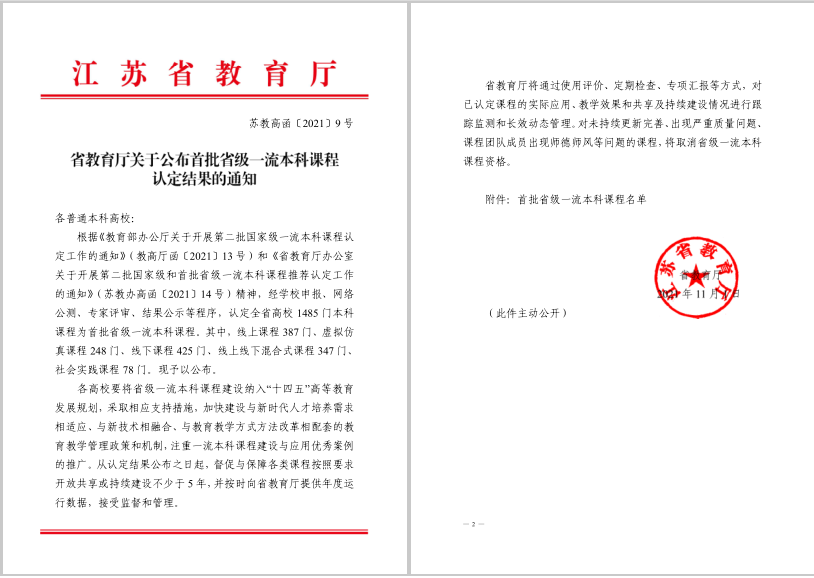近日,江苏省教育厅印发《关于公布首批省级一流本科课程认定结果的通知》(苏教高函〔2021〕9号),成人电影-av动漫-黄色电影