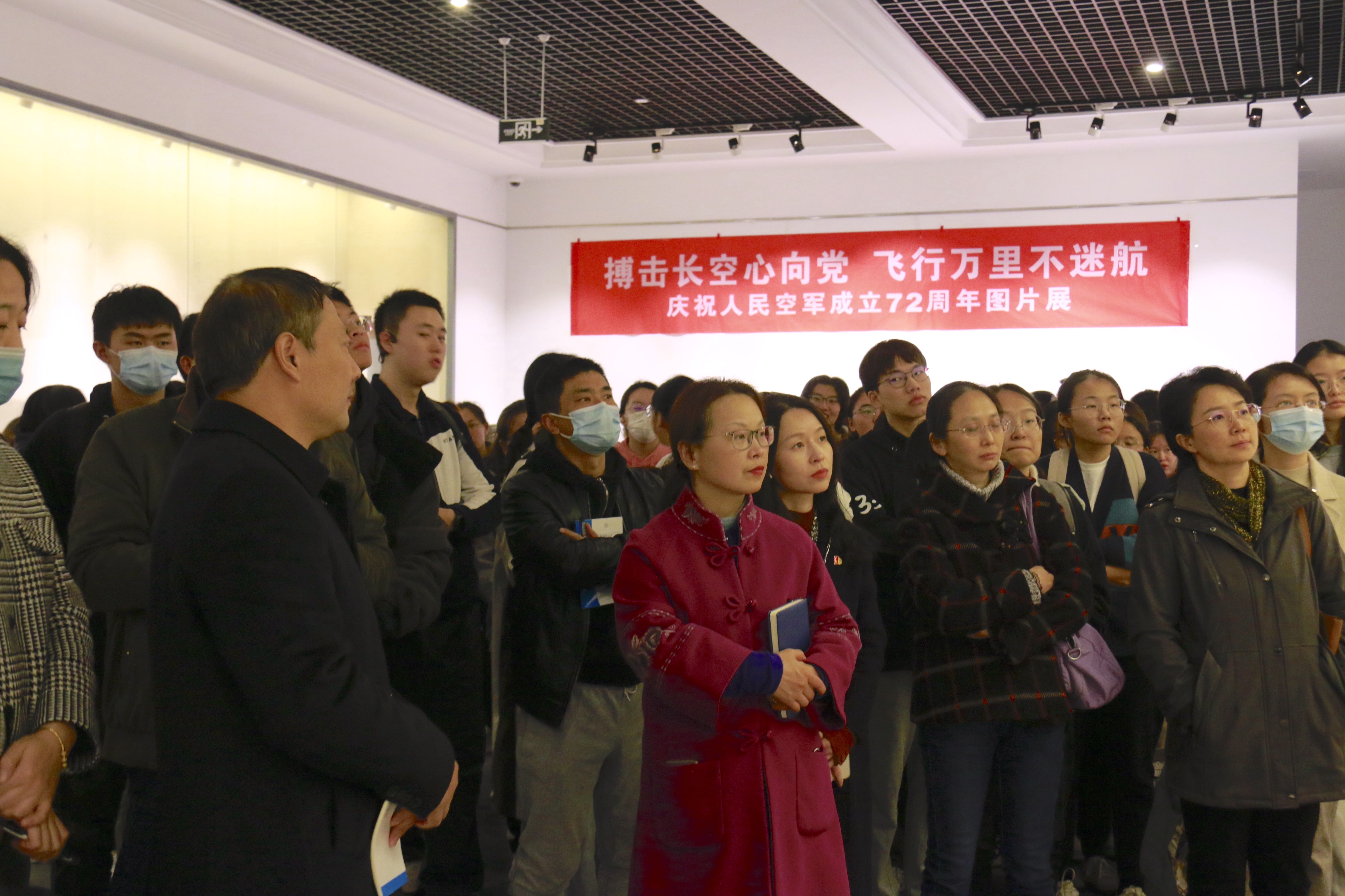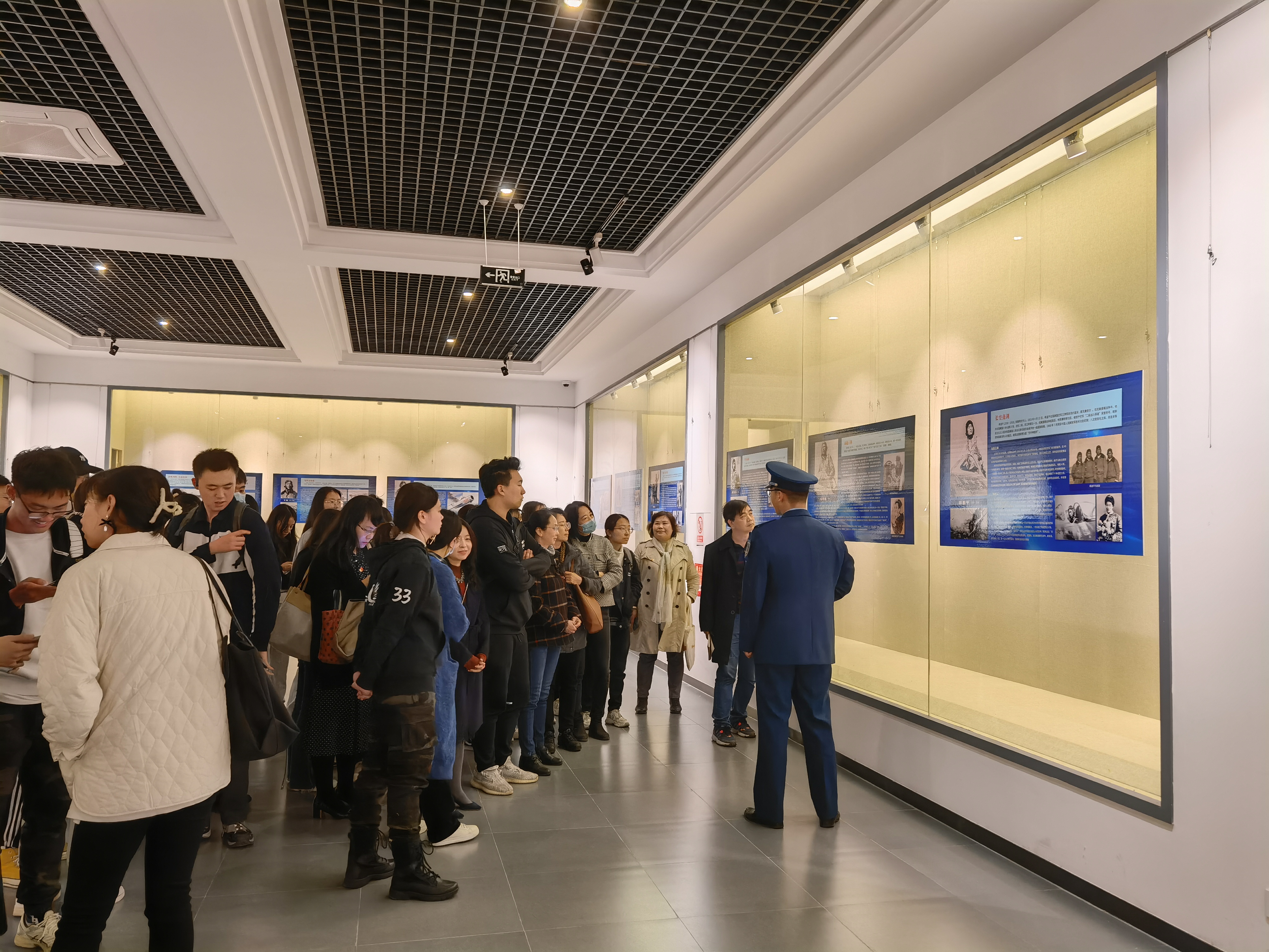 在中华农业文明博物馆展出的《搏击长空心向党,飞行万里不迷航》—庆祝人民空军成立72周年专题图片展上,姚副连长围绕“从无到有”、“航校成立”、“遭遇轰炸”、“开国大典”、“抗美援朝”、“国产首飞”、“参加核试”、“众鹰列阵”等9个板块对人民空军的发展历程做了详细的解读,进一步加深了我校师生对人民空军的了解,更增强了全体师生的国防意识,对党在新时代的强军目标、建设世界一流军队的要求,有了更加具体而深入的体会,对坚决维护党和国家建设大局,坚决维护国家主权、安全、发展利益,中国梦强军梦的实现信心倍增。