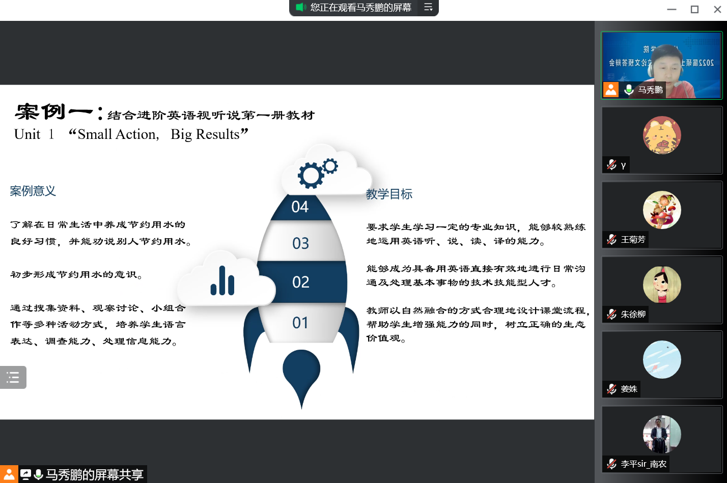 会上,第二批“课程思政”示范课程建设项目的负责人和第三批“课程思政”示范课程建设项目(耕读教育专项)的负责人依次进行汇报,各位老师结合教育部《高等学校课程思政建设指导纲要》、《江苏省课程思政示范课程建设指标》和《南京农业大学课程思政建设实施方案》等文件要求,通过展示凸显课程思政理念的教学大纲,体现课程思政特点的新教案、新课件,以及蕴含课程思政育人典型教学的案例,从课程思政建设实施方案、项目完成情况、课程思政建设成效及教学反思等方面对项目情况进行了汇报。其中,英语系钱叶萍老师和公外部朱徐柳老师,结合自己负责的课程,讲述了外语教学中课程思政教学设计要点,针对如何挖掘思政元素、如何与外语课堂教学深度融合展开深入分析,被推荐参加校级优秀项目的评选。