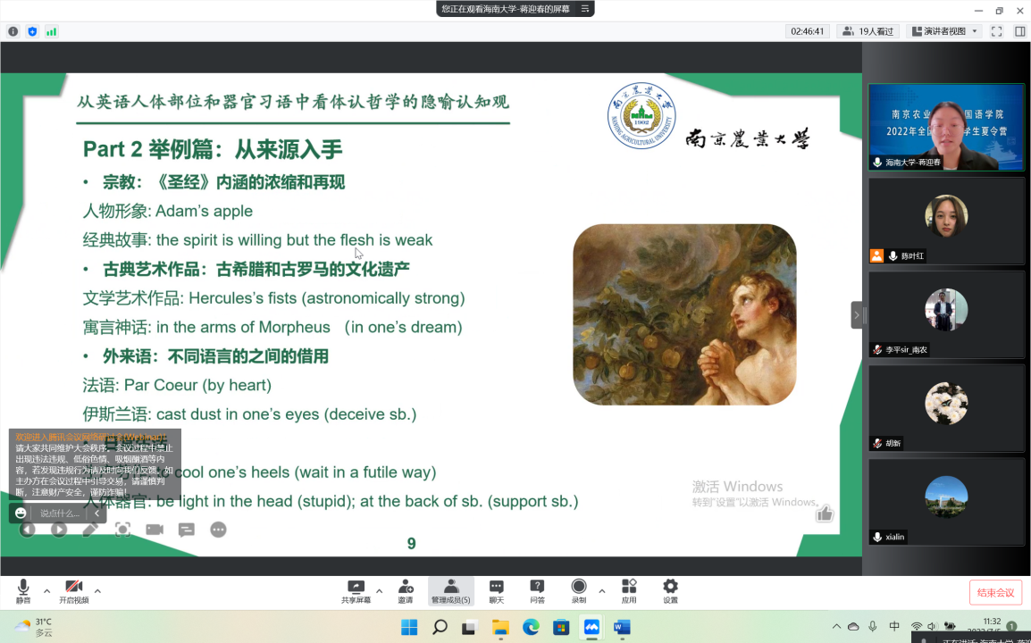 浓厚的人文和学术氛围。副院长马秀鹏主持开营仪式和上午的专题讲座。