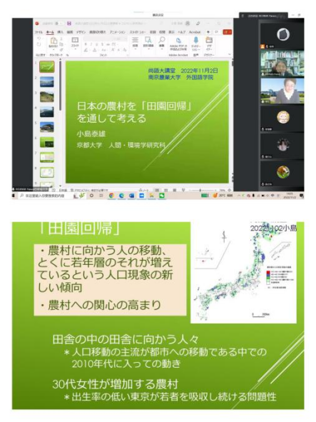 11月2日(周三)下午2点,日本京都大学小岛泰雄教授通过腾讯会议为我校师生做了一场题为《田园回归视角下日本农村问题研究》(『日本の農村を「田園回帰」を通して考える』)的学术讲座。成人电影-av动漫-黄色电影