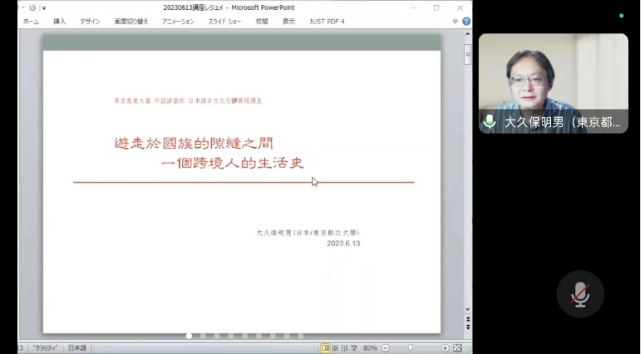 6月13日下午16时,日本东京都立大学研究院人文科学研究科的大久保明男教授应邀为我校师生做了一场题为《游走于国族的隙缝之间:一个跨境人的生活史》的线上学术讲座。本次讲座由南京农业大学成人电影