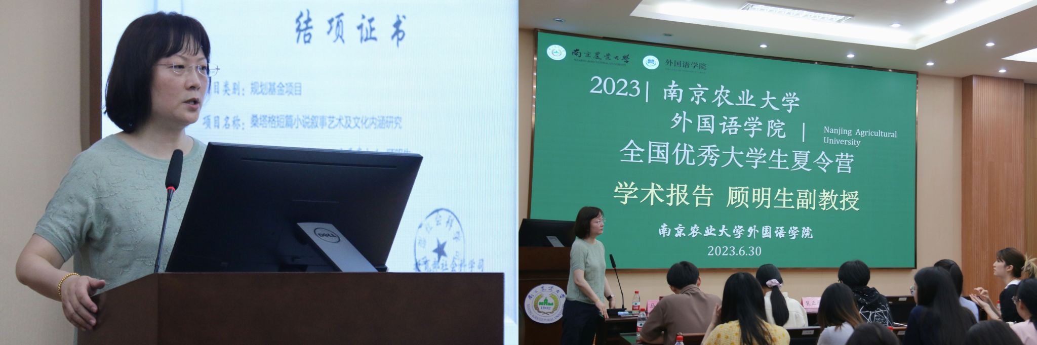 开营当天英语系副教授、硕士生导师顾明生和日语系副教授、硕士生导师金锦珠分别作了“英语文学研究的守正与创新”和“浅谈文化的交融——以汉字文化为例”的专题讲座。两位老师结合切身工作经验,讲述了学术研究的路径、方法,分享了研究创新的思考,以及中日韩文化交融对文字演变的影响,并针对营员们提出的问题进行了深入解答。