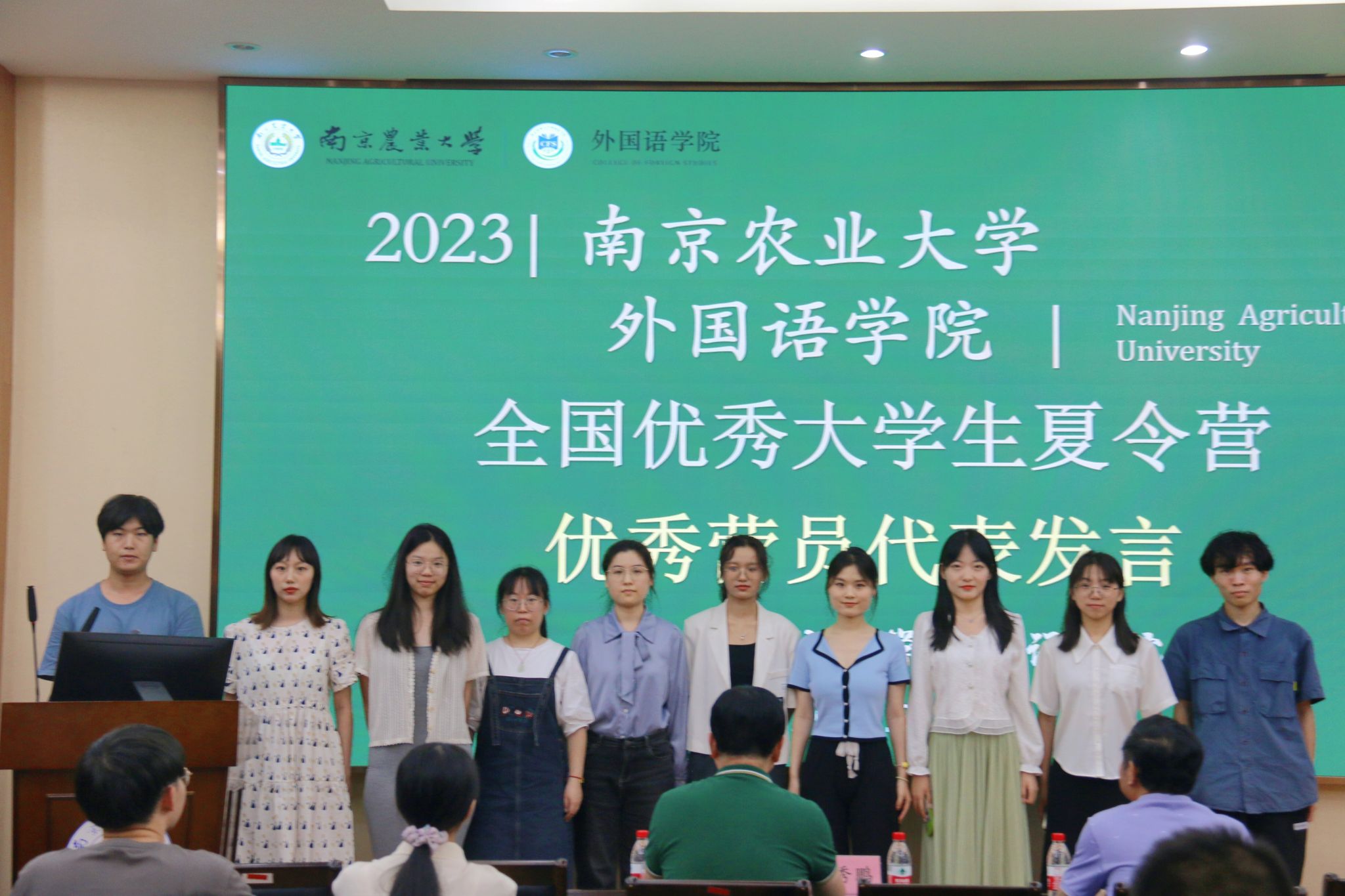 7月1日上午,按照日文/英文个人介绍、现场翻译、自由交流三个部分对营员进行了语言能力与学术倾向考核。绝大多数营员表现优秀,双语能力突出,给评委老师留下了深刻的印象。7月1日下午举行了夏令营闭营仪式。主持人樊淑英副教授宣读优秀营员名单,并邀请营员发言。营员们回顾了两日夏令营活动,交流了个人的感悟与思考,表达了笃行不倦的求学志向。副院长马秀鹏在总结致辞中向所有营员表示祝贺。他强调,大家要海纳百川,兼收并蓄;坚守初心,逐梦前行。最后,他向各位同学发出邀请,选择美丽的南农校园深造学习。游衣明副教授宣布夏令营圆满结束。
