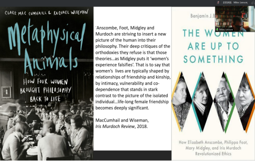 Miles Leeson教授的讲座立足默多克的访谈、小说和哲学创作,从“默多克的女性主义和文学实践”“默多克的男性第一人称叙事”以及“默多克小说对‘坎道列斯与巨吉斯’神话的指涉”等方面,探讨了作为女性小说家与哲学家的默多克对女性主义的认识与反思以及她在小说,尤其是男性第一人称叙事小说中对女性形象、男性凝视以及男性与女性之间权力关系的呈现。他指出,默多克的创作并非如有些学者所言不关注女性主义议题,远离了女性写作。相反,默多克的访谈、哲学与文学创作都表明默多克是一位与其所处时代的第二波女性主义者不同的女性主义思想家。