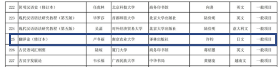 卢冬丽副教授申报的《<翻译论>(修订版)日文版》成功入选。本次全国共有125所高校的260个项目获批立项,其中日文版立项12项。