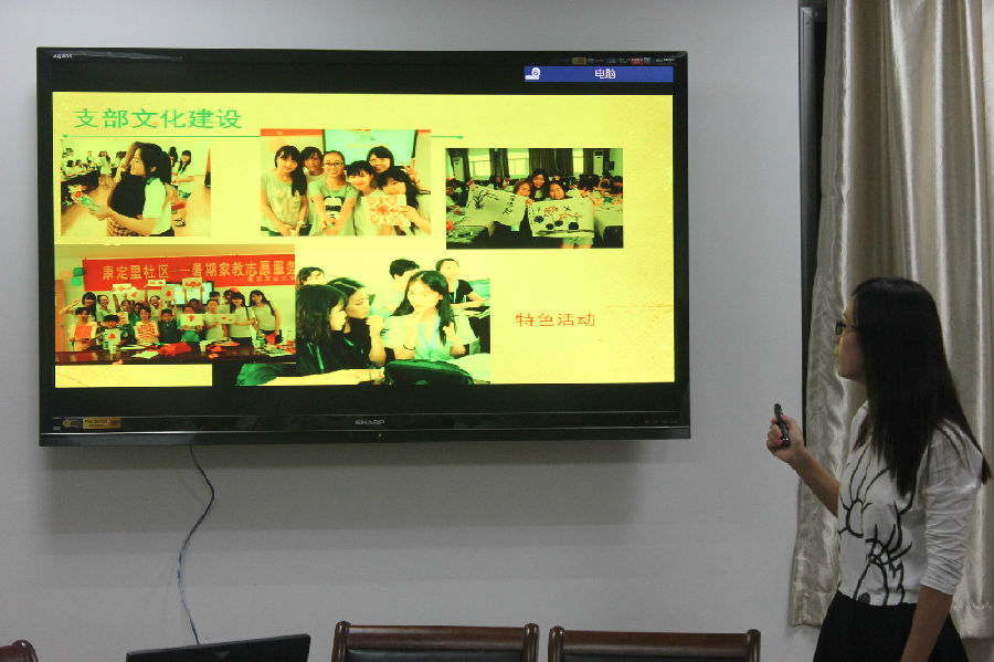 内首次开展了二外互助小组,别具风格。此外,团支书殷玥详细介绍了其“X”项目“留学在南京”,通过与学校的留学生开展交流活动,帮助留学生适应在中国的生活,同时也传播了中国的文化。该团支部在先锋支部活动中特别注重新媒体平台的运用,通过腾讯微博,新浪微博,校内外网站,微信等平台开展宣传,提高了活动的影响力。
