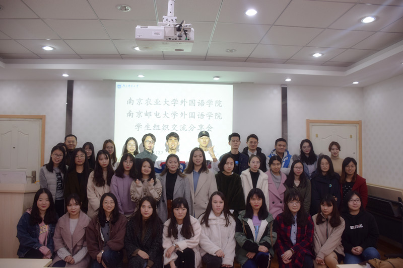 交流,外语院辅导员甄亚乐、杨瑞萌与全体学生干部进行了接待。两院学生会就学生工作各方面内容进行了深入交流。交流会由南京农业大学外语院解立夫主持。