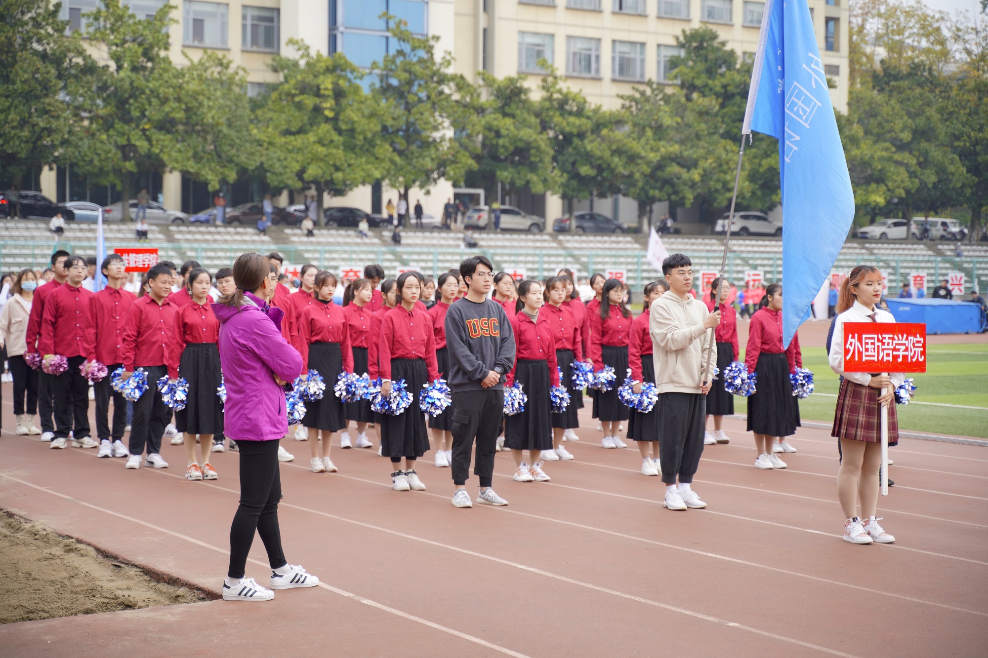 42名同学参加了开幕式方阵表演,展现出外语院坚持不懈,拼搏奋斗的体育竞技精神,得到了现场师生的阵阵掌声。