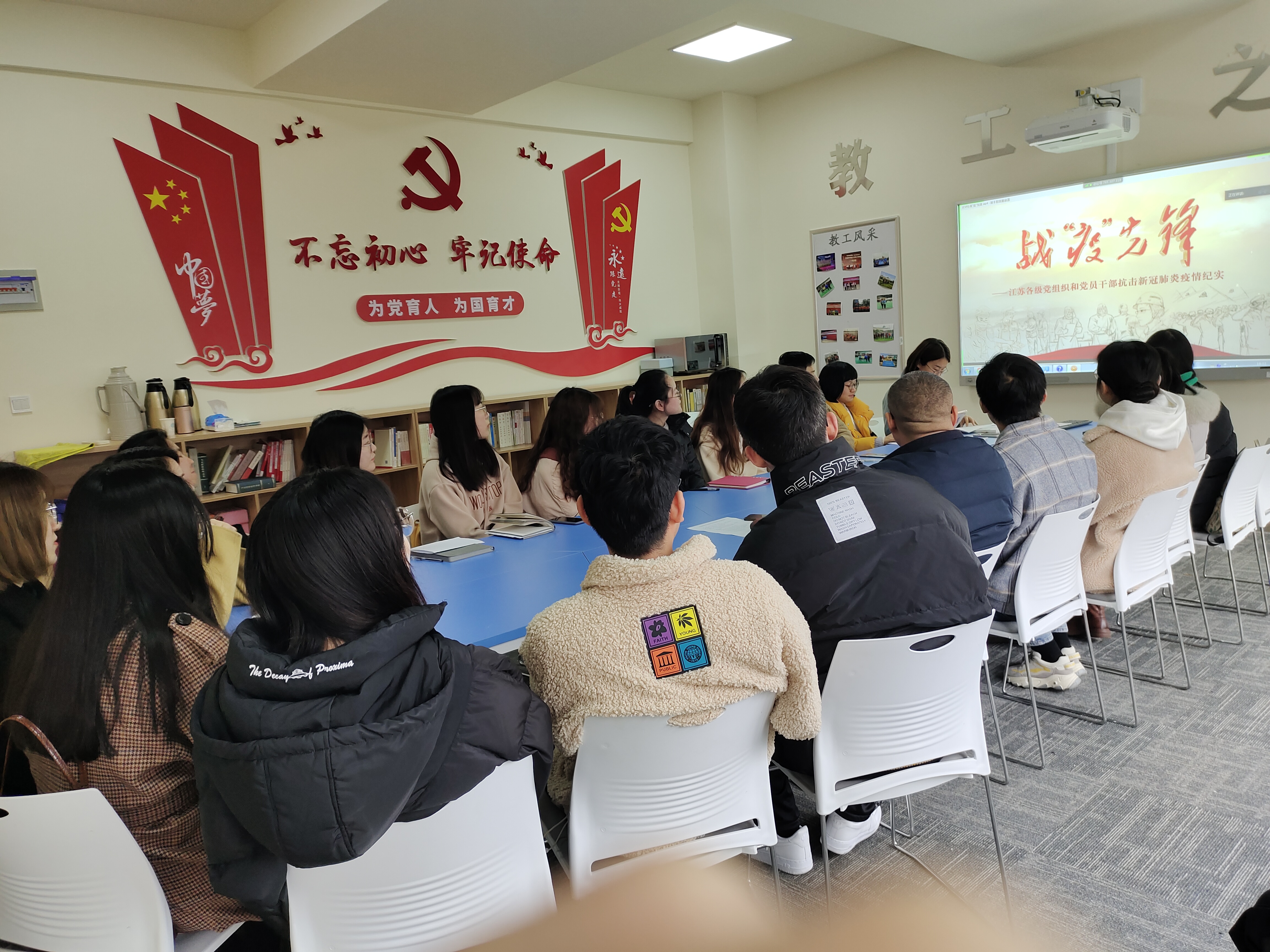 会前,全体党员集体学习了江苏先锋网视频《战“疫”先锋》。视频集中展现了各行各业的党员同志把初心和使命书写在抗击疫情的前线,让党旗在战“疫”一线高高飘扬的责任与担当。